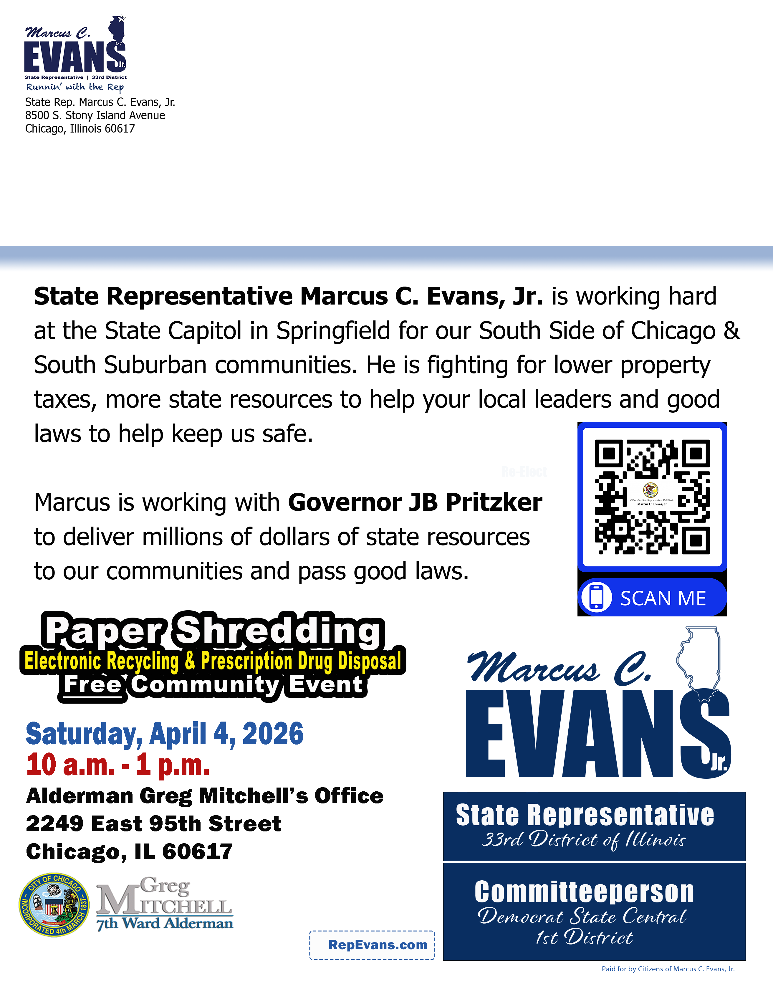 Listening to the concerns of residents is essential to Rep. Evans. Stop by the 33rd District Office on the 2nd and 4th Tuesday (4:30pm-7:30pm) of the month for Constituent Night and talk directly to Rep. Evans about what is on your mind.